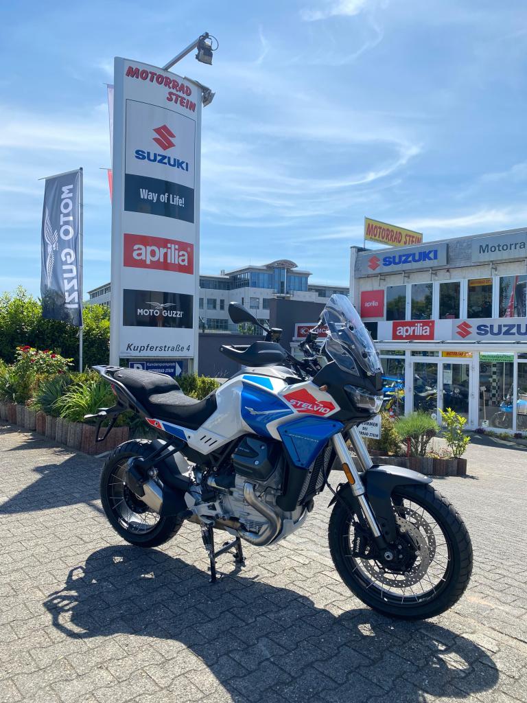 Die Moto Guzzi Stelvio bringt alles mit, was ein echte Reiseenduro ausmacht: Kraft, Kontrolle und eine klare Haltung. Mit ihrem V2-Herz, dem unverwechselbaren Sound und einer Ausstattung, die auf Tour genauso überzeugt wie auf unbefestigtem Terrain, ist sie die Antwort für alle, die mehr wollen als nur Kilometer machen.