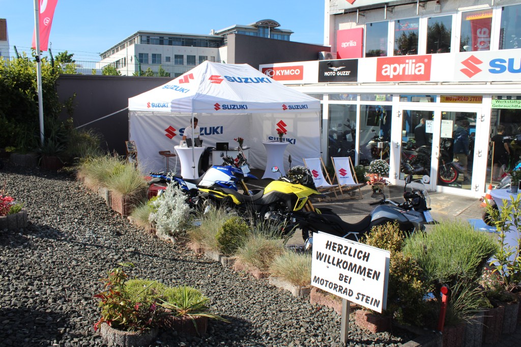 Im Rahmen des Tag der offenen Tür können Motorradgans direkt bei uns vor Ort verschiedene Suzuki Bikes testen und sich einen persönlichen Eindruck verschaffen. Die Probefahrten sind kostenlos, eine Voranmeldung über die Suzuki Roadshow Website ist aber erforderlich.
